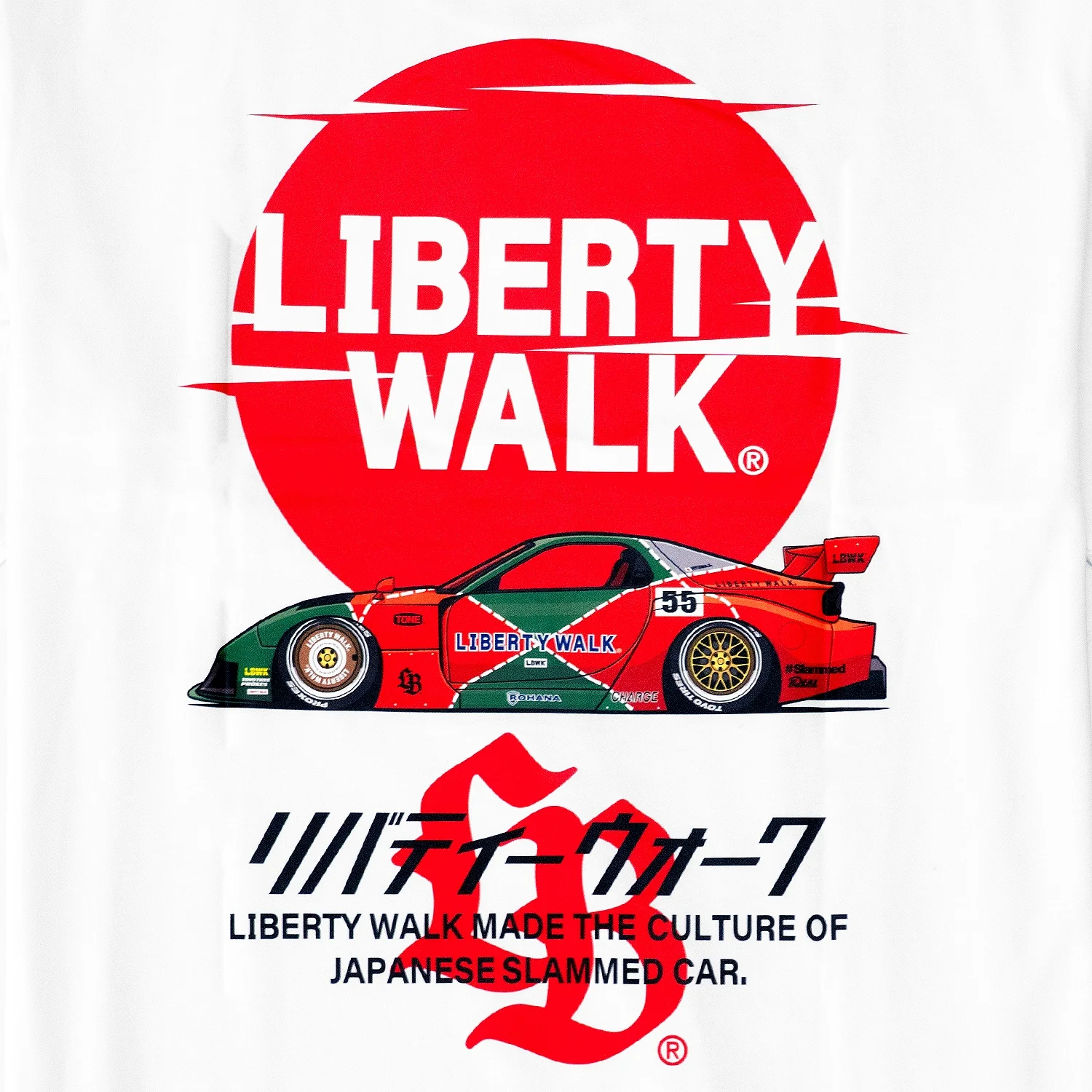 Liberty Walk 'Sunrise logo' RX-7 FD white t-shirt